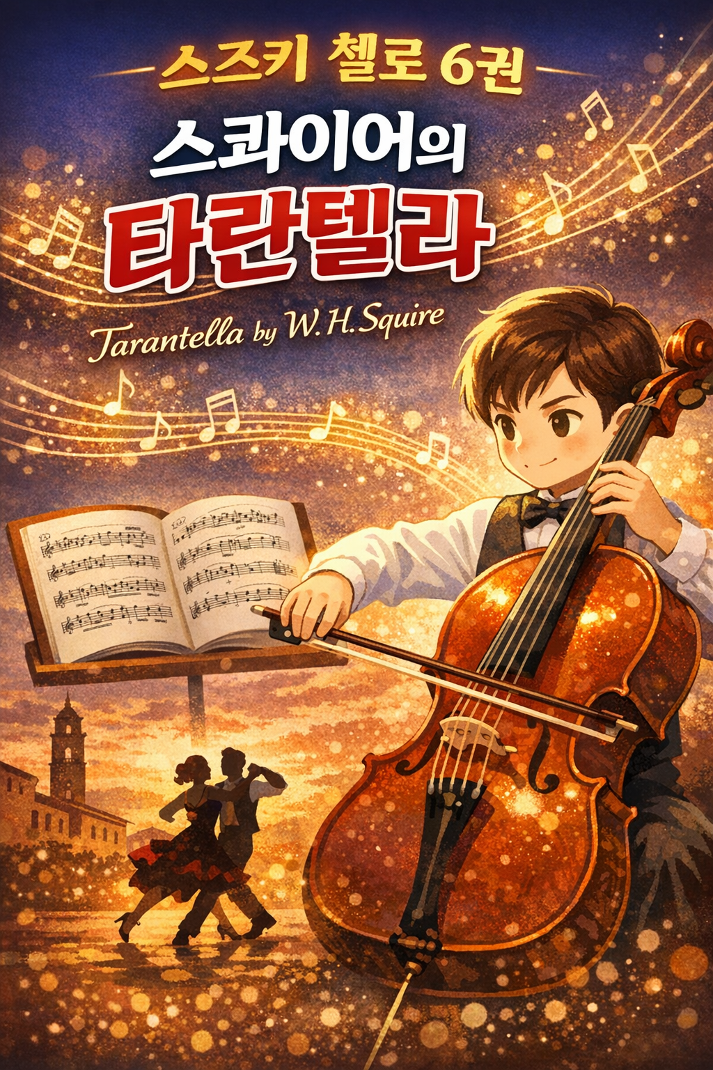스즈키 첼로 6권에 수록된 윌리엄 헨리 스콰이어(W. H. Squire)의 「Tarantella」는 초등 저학년 콩쿨 준비곡으로 자주 선택되는 대표적인 레퍼토리다. 빠른 템포와 경쾌한 리듬 덕분에 무대에서 존재감이 확실하고, 연습량과 기본기가 그대로 드러나는 곡이라는 평가를 받는다.