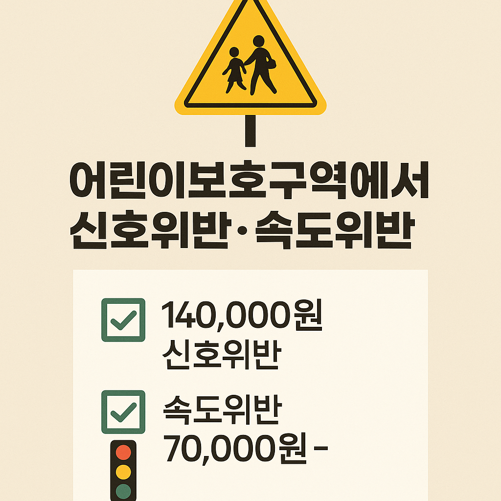 - 어린이보호구역 신호위반: 과태료 기준 14만 원 안팎, 현장단속 시 벌점 15점