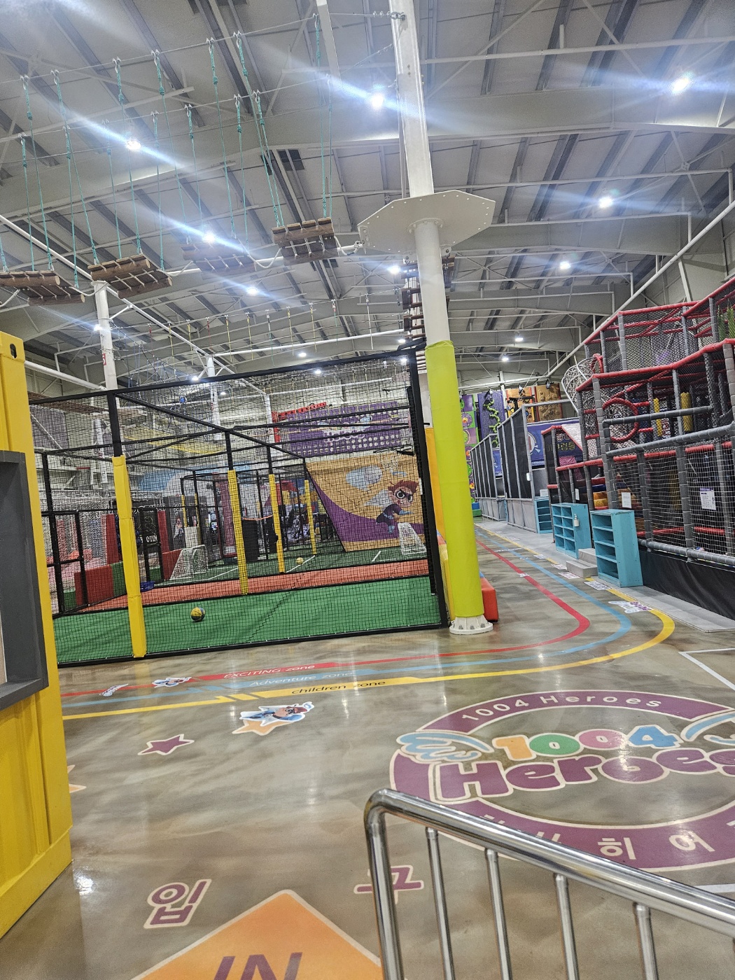제가 직접 가보니 여기는 확실히 초등학생들이 놀기에 최적화되어 있습니다. 클라이밍, 로프 코스, 스크린 스포츠 등 몸으로 쓰는 액티비티가 정말 많거든요. 반면, 미취학 아동들은 보호자 동반이 필수입니다. 아이들 안전 때문에 부모님이 계속 따라다니며 케어해야 하는데... 사실 우리 부모들, 키즈카페에 '쉬러' 가는 거잖아요? ㅎㅎ 미취학 아이를 둔 분들에겐 노동의 연장이 될 수 있어 개인적으로는 조금 비추입니다. 하지만 초등생 부모님들에겐 여긴 천국입니다!