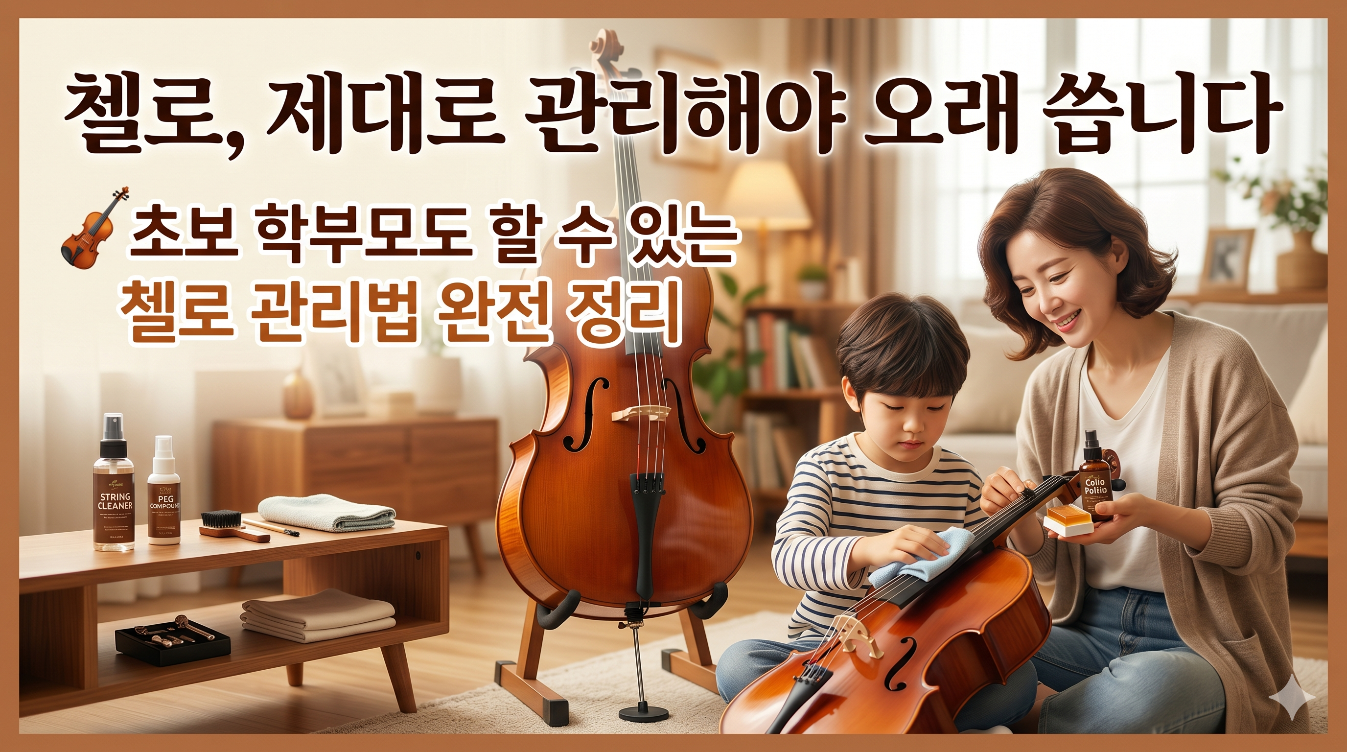 첼로 관리가 처음엔 번거롭게 느껴질 수 있지만 습관이 되면 금방이에요. 연주 후 5분만 투자해서 닦고, 케이스에 잘 넣어두는 것만으로도 악기 수명이 훨씬 길어진답니다. 우리 아이들이 좋은 소리로 오래오래 연주할 수 있도록 악기도 꼼꼼히 챙겨주세요 🎻💜